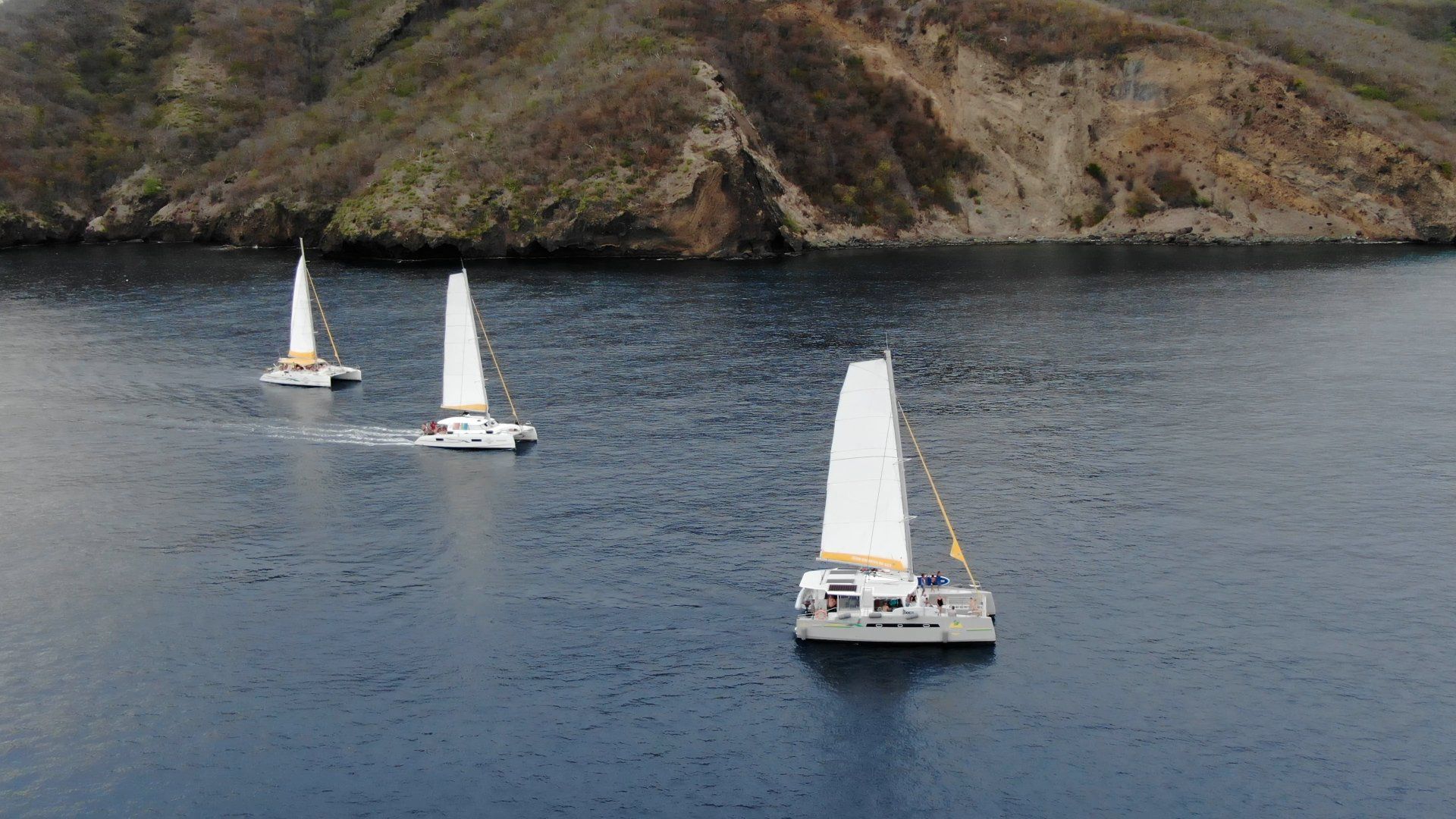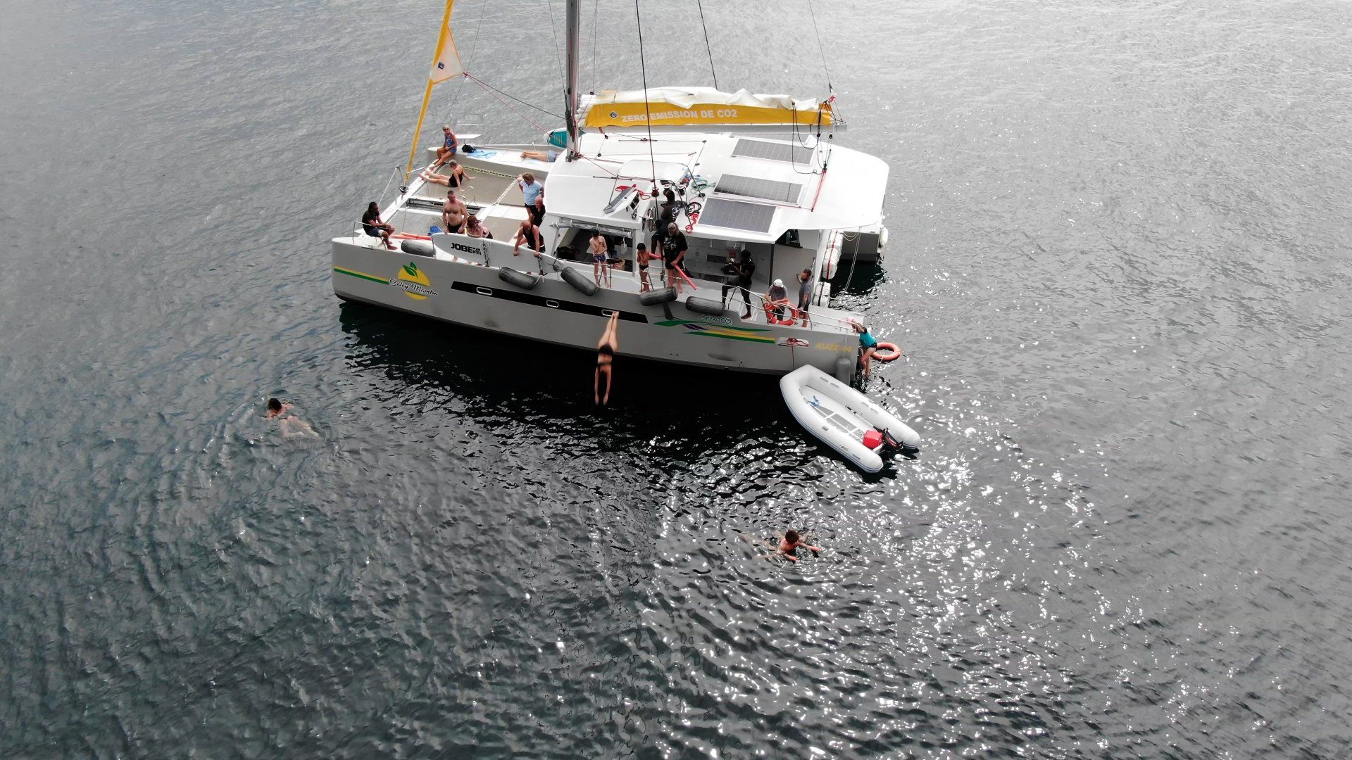 Tous nos catamarans offrent le même niveau de confort et de sécurité. Nos excursions se font de manière aléatoire sur l'un ou l'autre de nos catamarans.